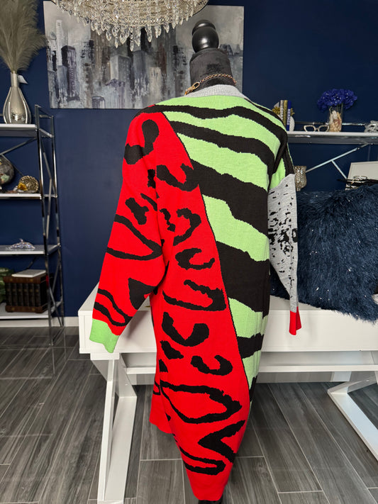 Boutique Knit Leopard Mix Print Sweater Dress (Fits 1X/2X has stretch)