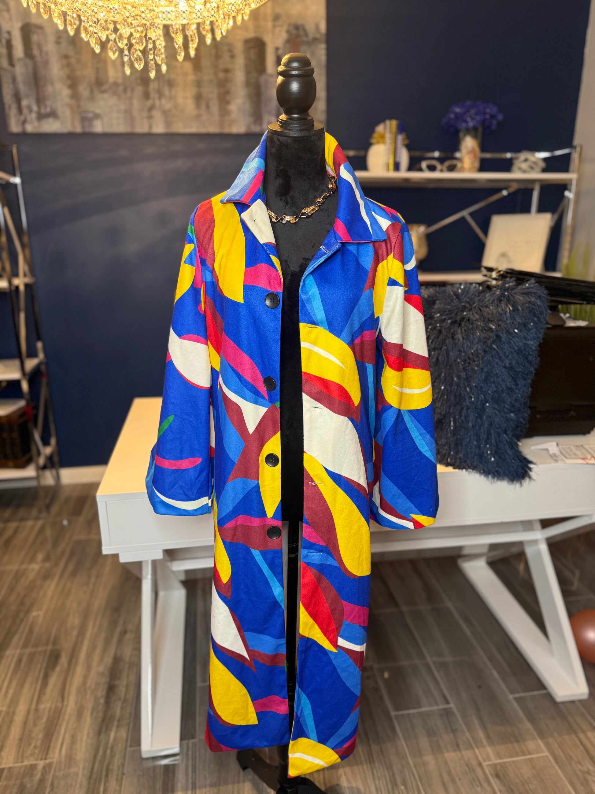 Blue Mix Abstract Trench (Size Large